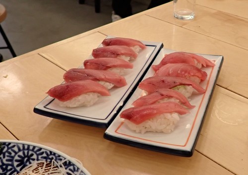 マグロ・赤貝・鯛など5点盛りくらいで2人前2000円は、東京駅という立地を考えると安いですね。